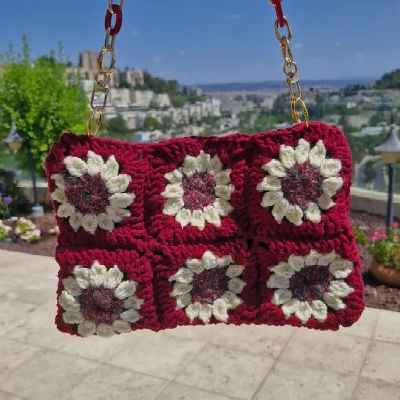תיק “ריבועי אביב” הוא תיק סרוג בעבודת יד מבית Bags & Home, המשלב עיצוב ריבועי אלגנטי עם תחושת רכות ונוחות.